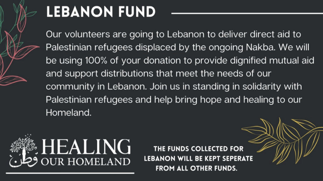 Healing our Homeland is sending their volunteers to Lebanon so they can distribute direct aid to Palestinian refugees displaced by the ongoing Nakba. 100% of your donations will be used to provide mutual aid & support distributions that meet community needs in Lebanon.